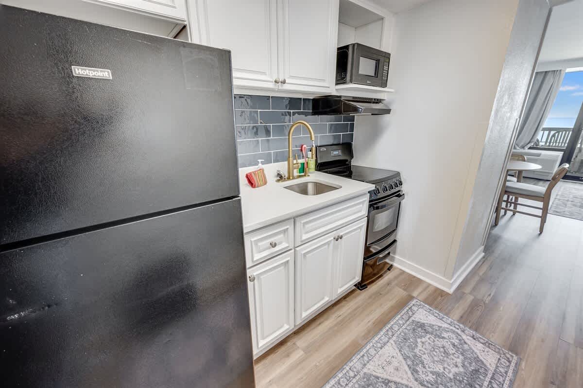 Our beachfront condo features 2 Queens, and 1 Murphy fold-down bed, a private bathroom, full-sized appliances. This beachfront condo sleeps up to 6. Enjoy the morning sunrise on your private oceanfront balcony overlooking the beautiful ocean. Amenities include, but are not limited to: a large kiddie fun activity pool area, 3 lazy rivers, 7 hot tubs, 2 outdoor pools, 1 indoor pool, and more! Great available unit in a fantastic resort!