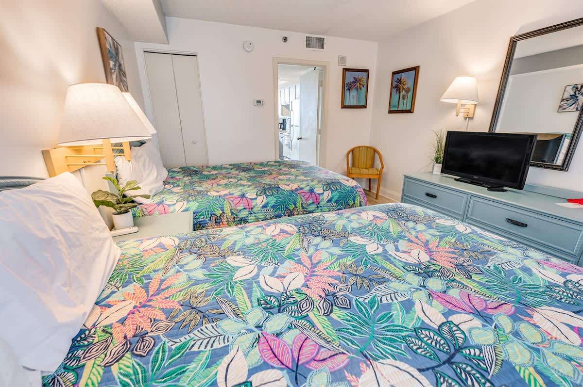 * 2 Queen Beds and 1 Sleeper Sofa; Sleeps up to 4 comfortably, sheets provided