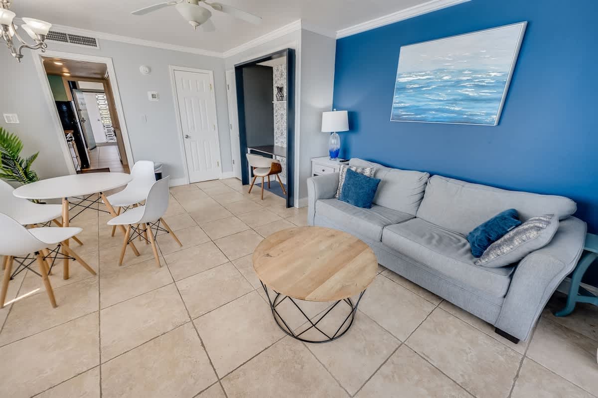 Just added! This beautifully refurbished one-bedroom condo is located on the sixth floor of Ocean Dunes Tower 2. It features a private balcony and can accommodate up to four guests. The condo includes a king bed and a sleeper sofa, with linens provided. The spacious kitchen is fully equipped, and the condo is tastefully furnished with tile flooring and granite countertops. Additional amenities include fast Wi-Fi access, excellent housekeeping services, and free onsite parking.
