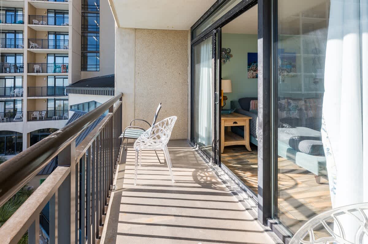Step onto your private balcony to take in ocean, beach, resort, pool, city skyline, and park views. It’s a calm place to start the morning or wind down later in the day, with the shoreline always in sight. Guests also have access to shared outdoor resort spaces, including grassy areas, sun loungers, and outdoor seating.