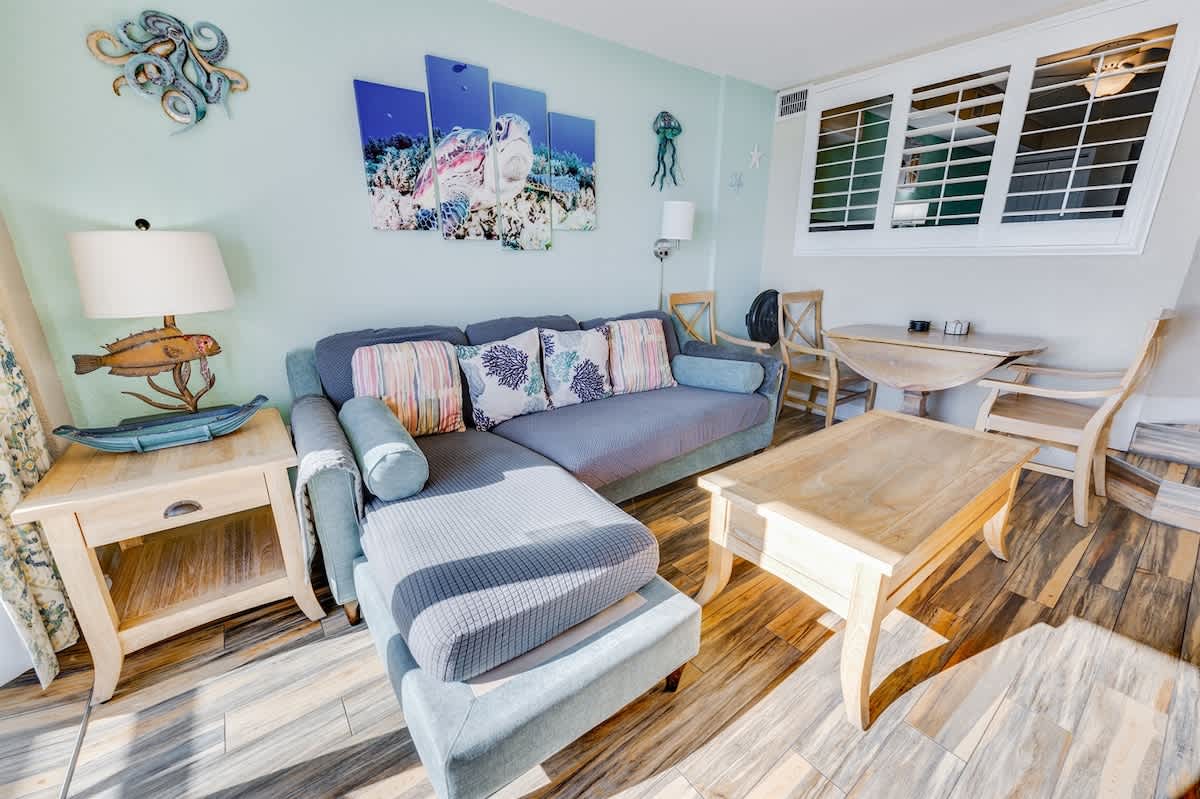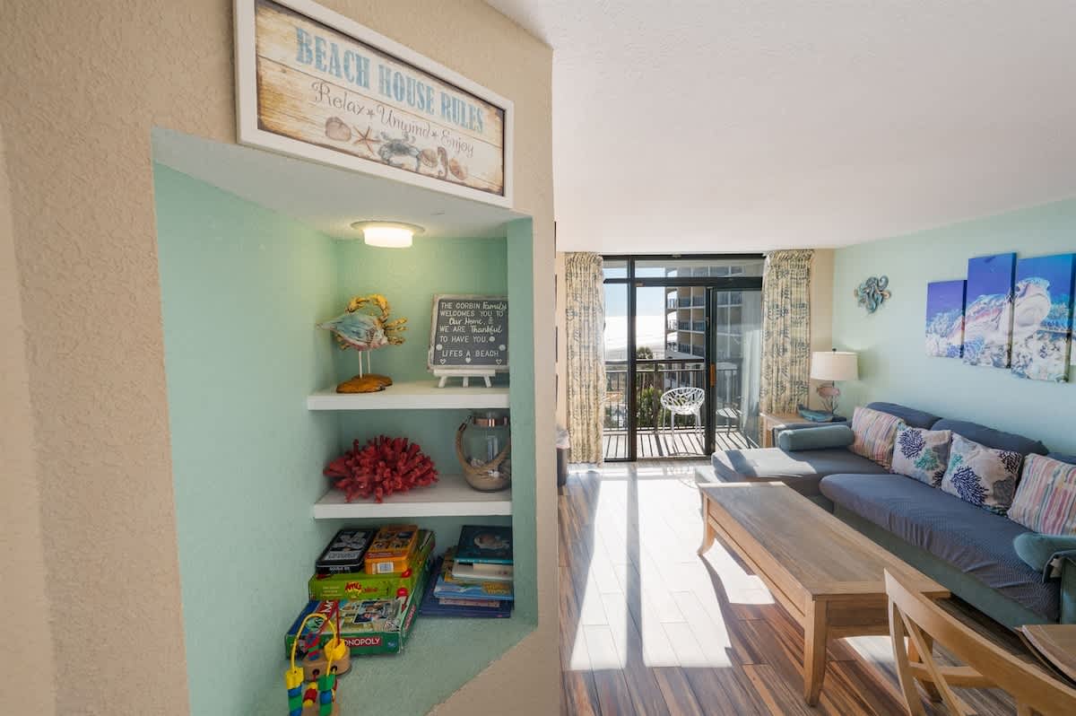 This entire condo is located within Beach Cove Resort in North Myrtle Beach and accommodates up to six guests. The layout blends open living space with a private bedroom, making it well suited for shared stays while still offering room to unwind after a day by the water or nearby attractions.