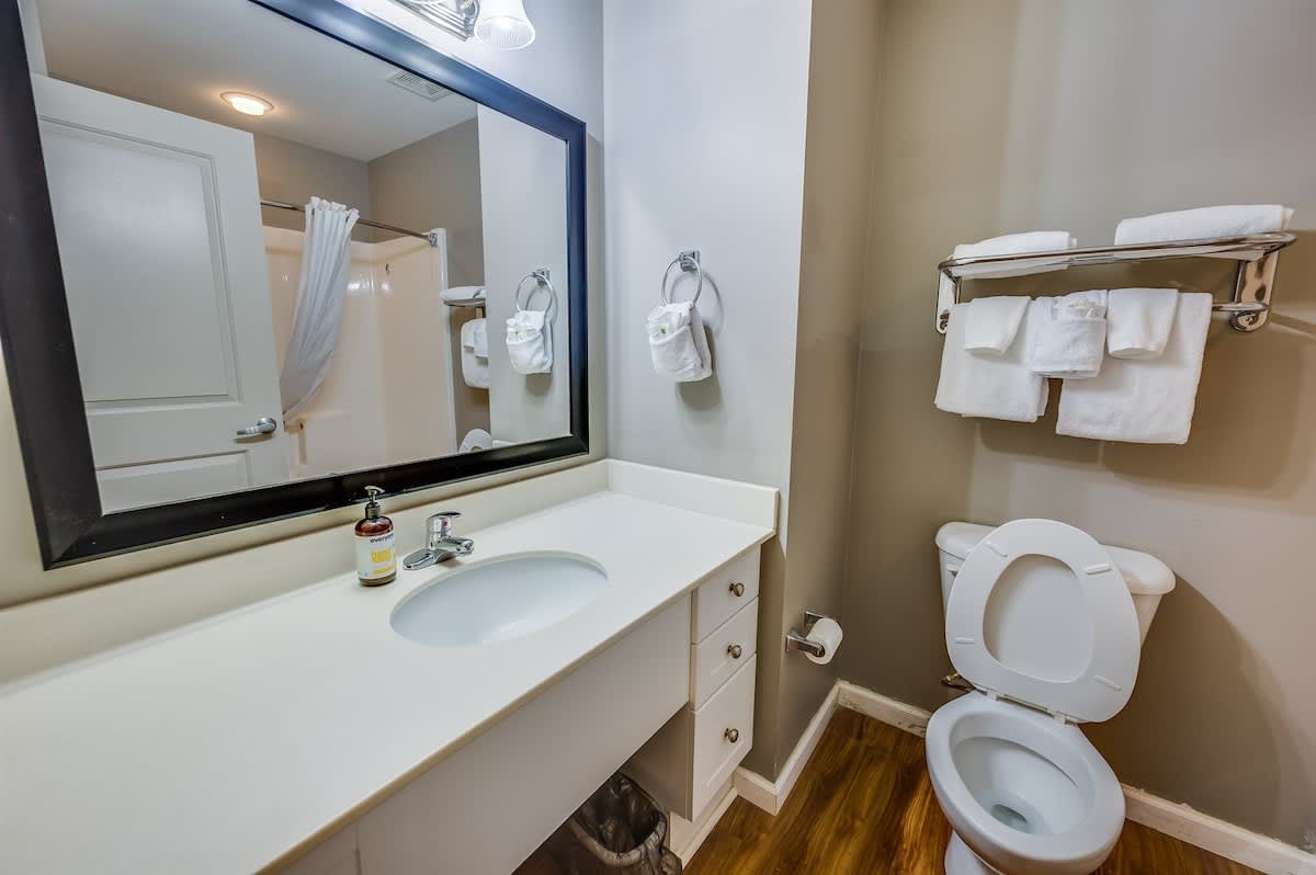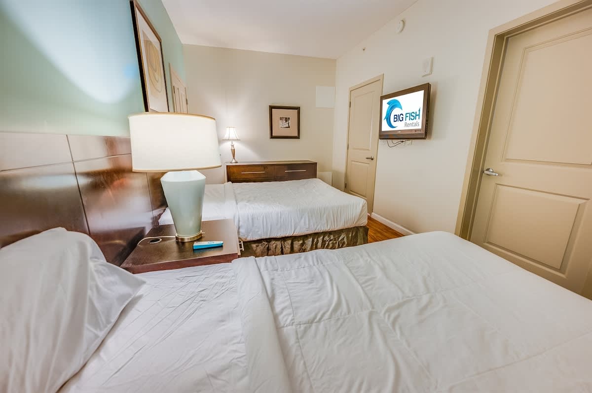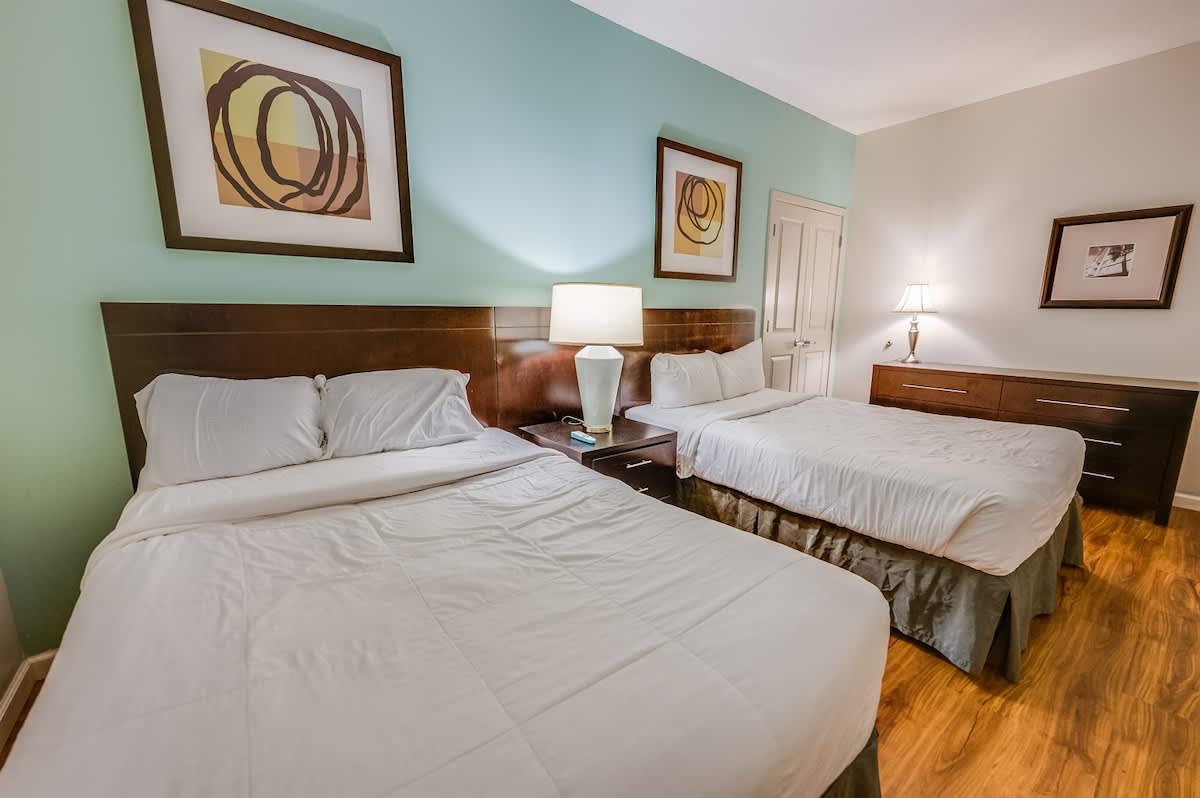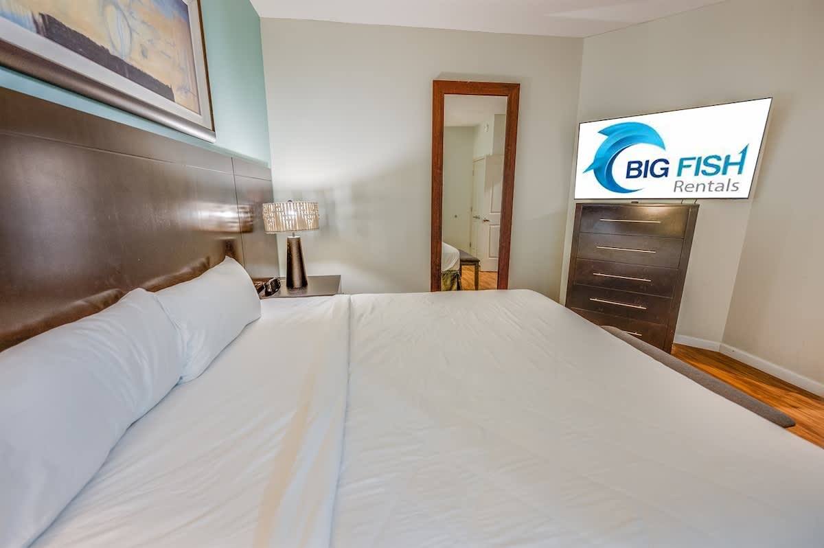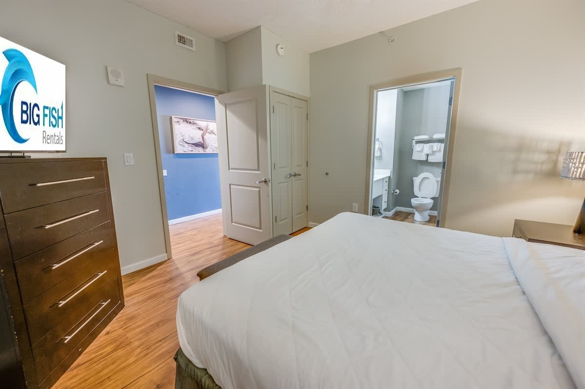 Two bedrooms feature king beds and private bathrooms with soaking tubs, offering a relaxing retreat at the end of the day. The third bedroom provides additional beds and its own full bathroom, creating flexibility for different group setups. Fresh bed linens, extra pillows and blankets, and room-darkening shades help ensure restful nights throughout your stay.