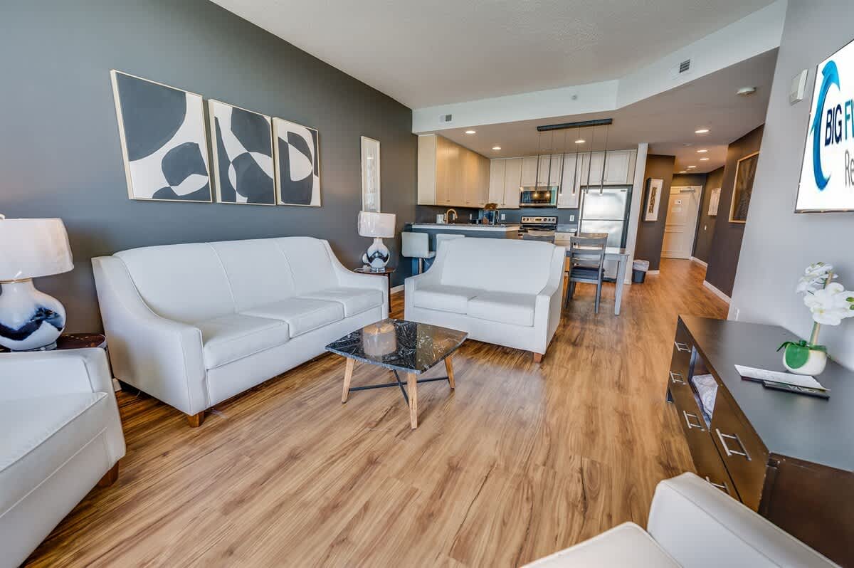 This entire condo sits in the heart of Myrtle Beach and is designed for shared time and comfortable downtime. With space for up to eight guests, it balances privacy and togetherness, making it well suited for family trips or getaways with friends. The layout includes three bedrooms, five beds, and three baths, giving everyone room to unwind after full days by the water or exploring nearby attractions.