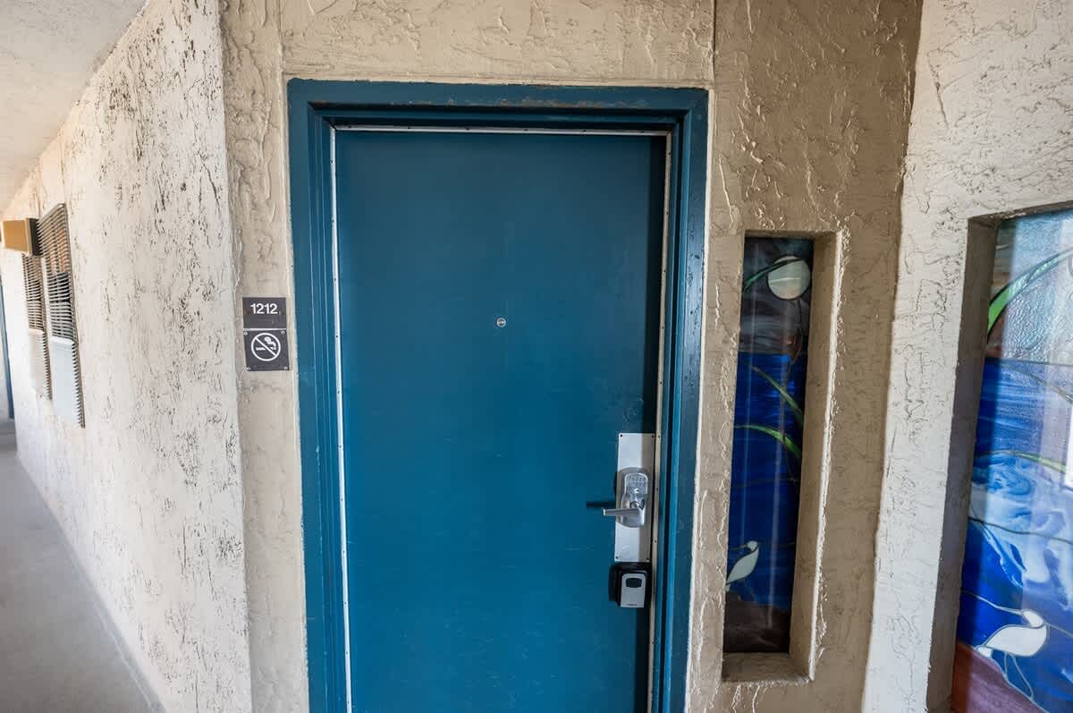 Step onto the private balcony and take in layered views of the ocean, beach, resort grounds, and city skyline. Shared beach access places the shoreline just steps away, making it easy to move between sand and sea throughout the day. Guests also enjoy resort access, including a pool, hot tub, sauna, sun loungers, and shared outdoor areas, along with an outdoor shower for rinsing off after time by the water.