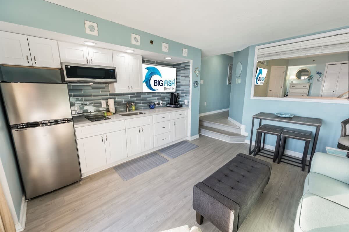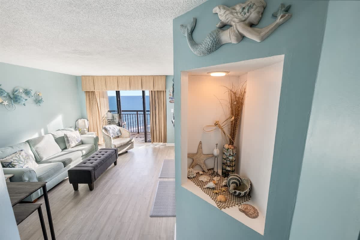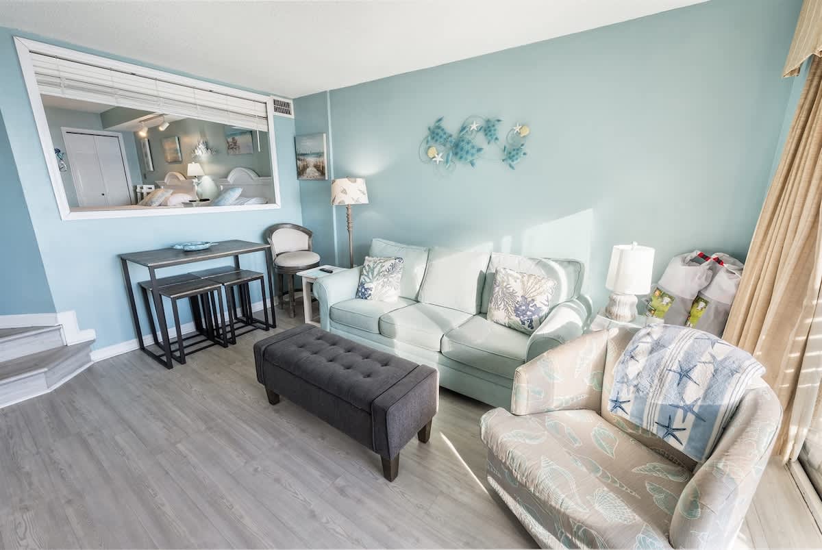 Set at the southernmost tip of North Myrtle Beach, the condo offers a quieter beachfront setting while remaining close to dining, shopping, and entertainment. Nearby attractions such as Barefoot Landing, the Alabama Theater, and the House of Blues are easily accessible.