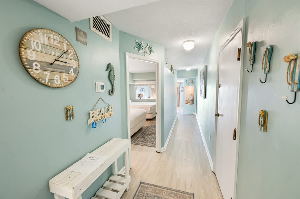 This entire oceanfront condo in North Myrtle Beach is arranged for families and small groups seeking time together by the coast. With one bedroom and shared living areas, the layout sleeps up to six guests while remaining comfortable and functional. Natural light moves through the space throughout the day, and air conditioning, heating, and a ceiling fan help maintain comfort year-round.