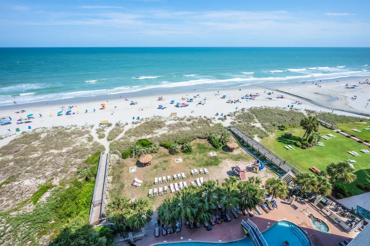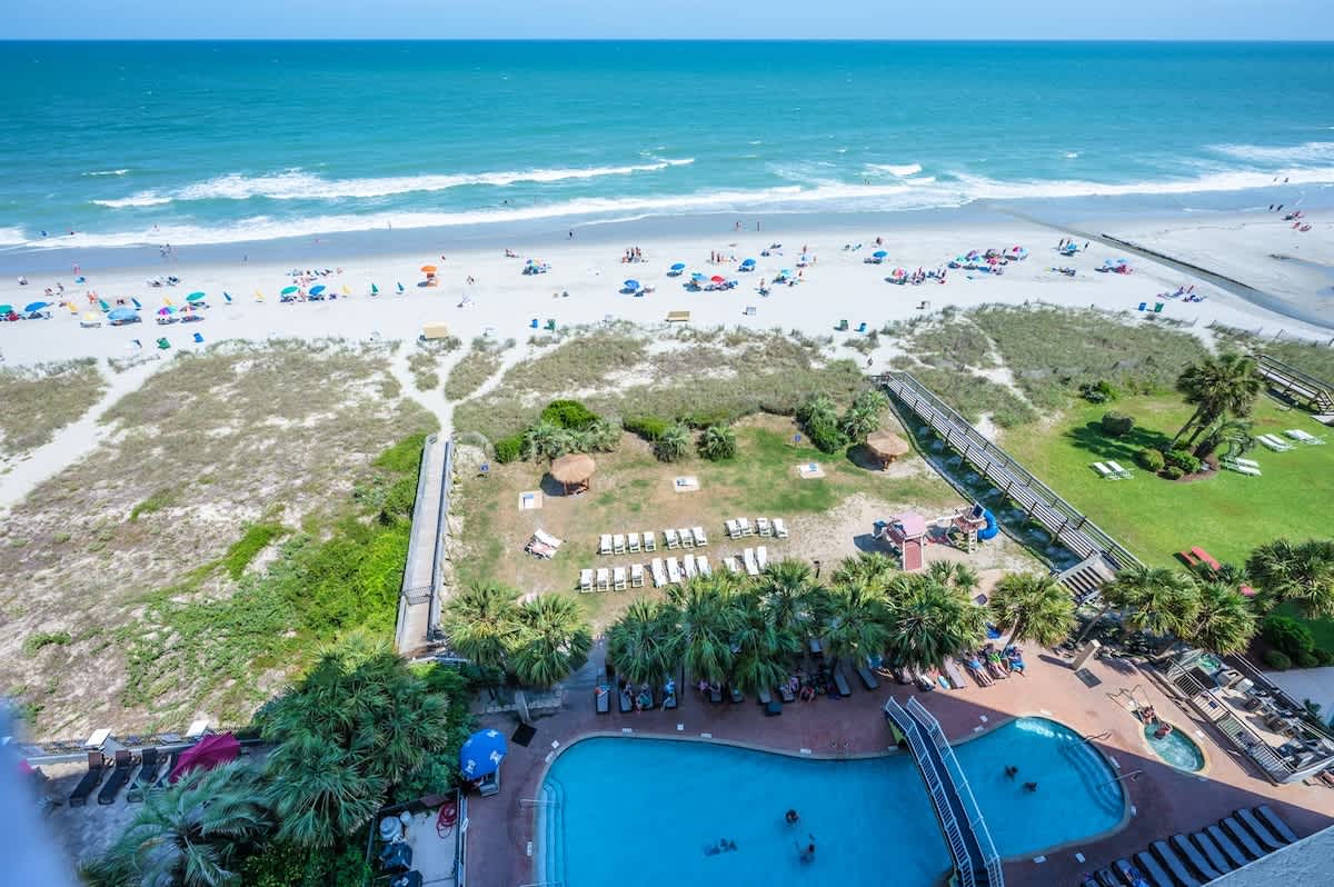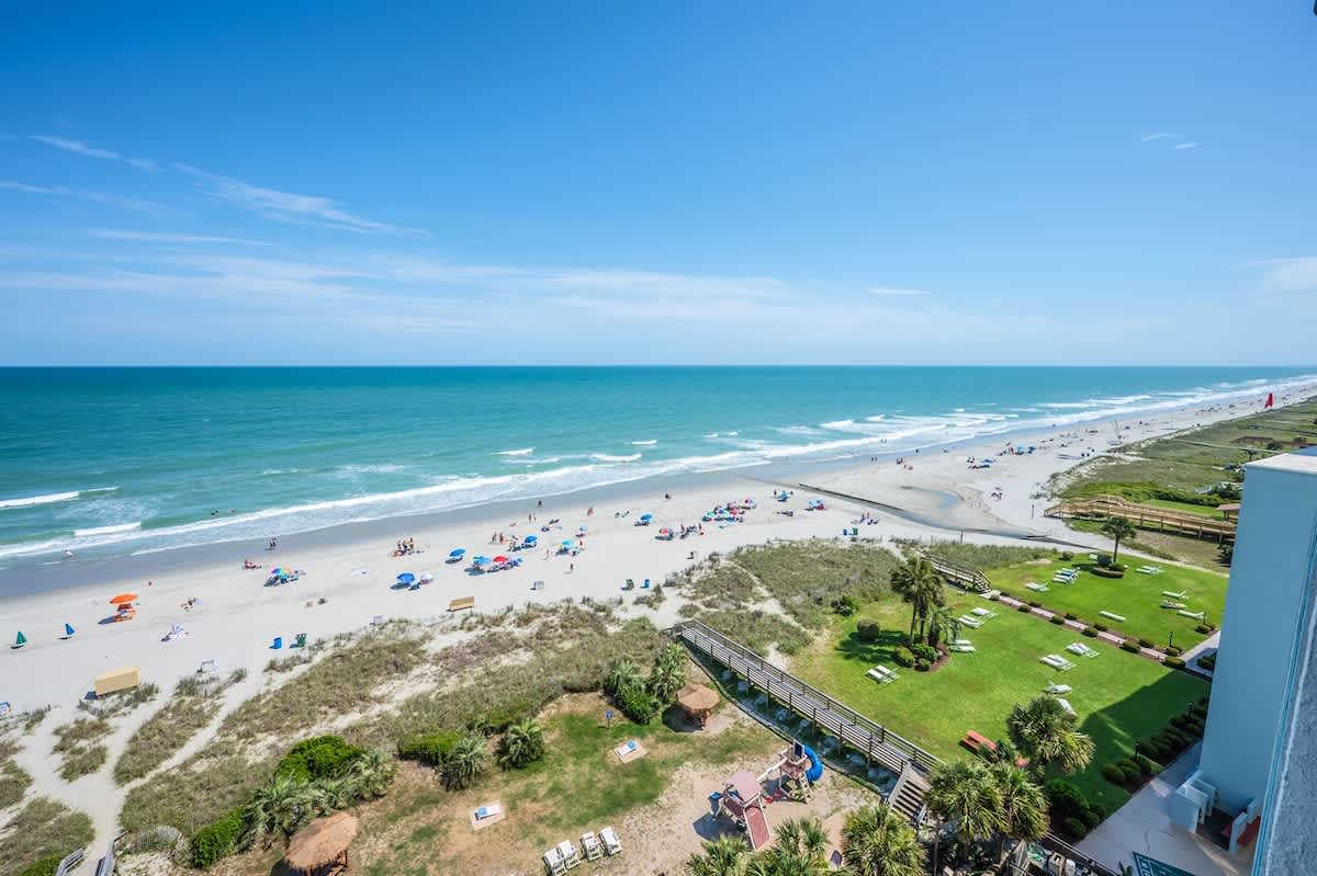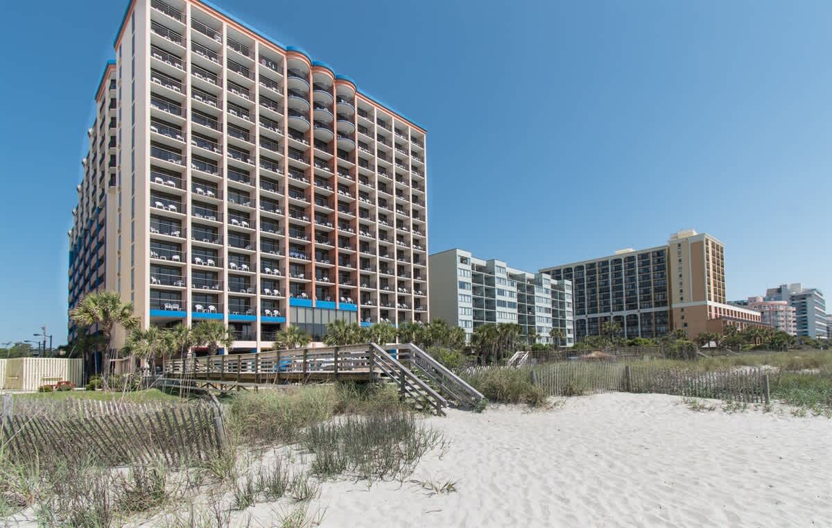 Monterey Bay Resort sits on the north end of Myrtle Beach, away from the busiest downtown stretch but still close to restaurants, shops, and entertainment. The setting offers an easy balance between a calmer beachfront atmosphere and access to local attractions.