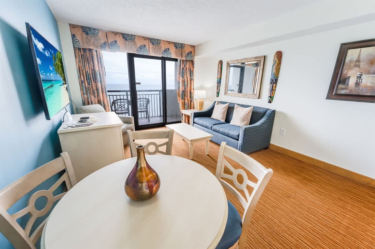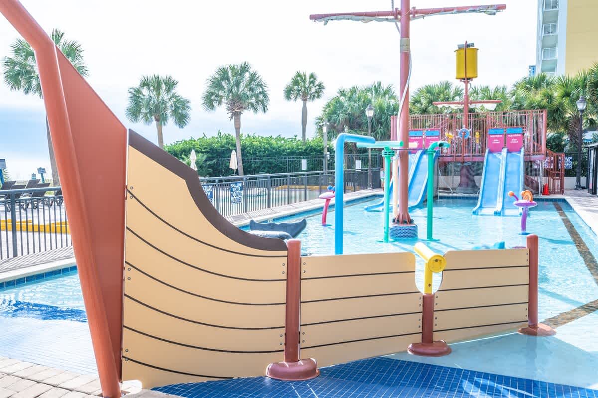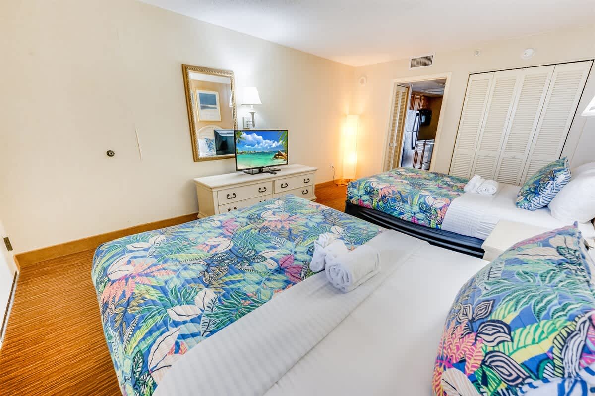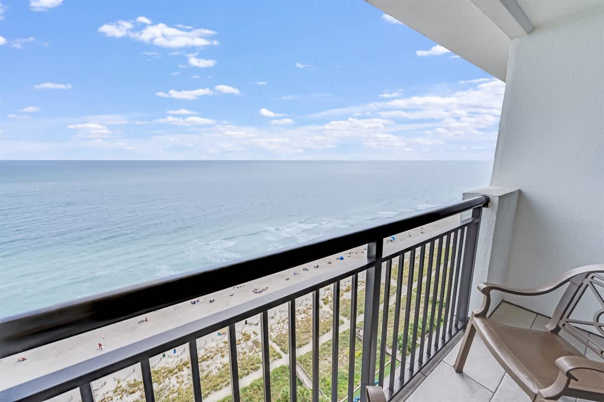 This oceanfront condo is located on the top floor of the Breakers Paradise Tower. It has a private balcony, a fully equipped kitchen, and high-speed Wi-Fi. The condo has two queen beds and a Murphy bed, and sleeps up to six. Linens are provided. The condo is professionally cleaned to a high standard. The resort has indoor and outdoor pools, lazy rivers, and hot tubs, as well as free onsite parking.