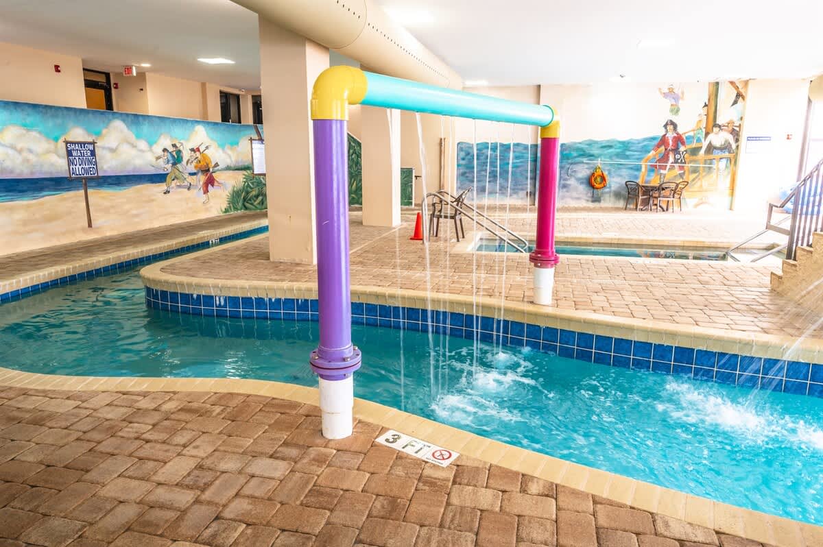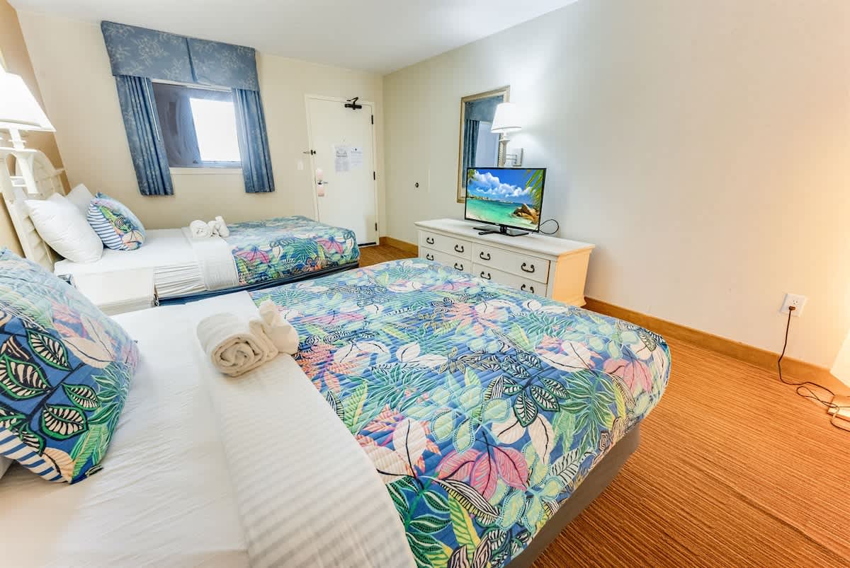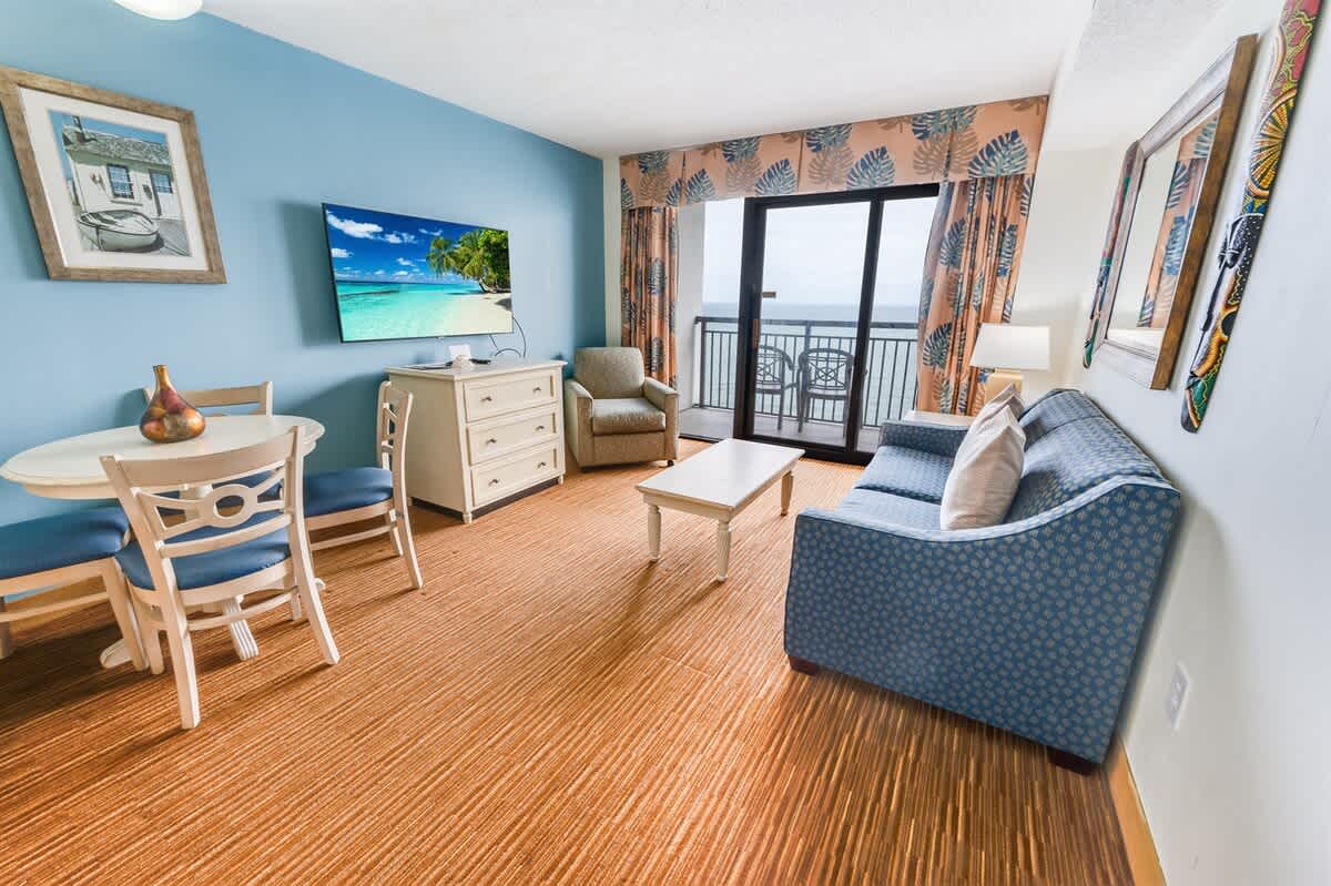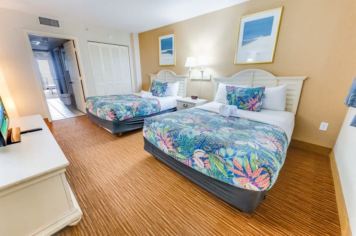 This oceanfront condo is located on the top floor of the Breakers Paradise Tower. It has a private balcony, a fully equipped kitchen, and high-speed Wi-Fi. The condo has two queen beds and a Murphy bed, and sleeps up to six. Linens are provided. The condo is professionally cleaned to a high standard. The resort has indoor and outdoor pools, lazy rivers, and hot tubs, as well as free onsite parking.