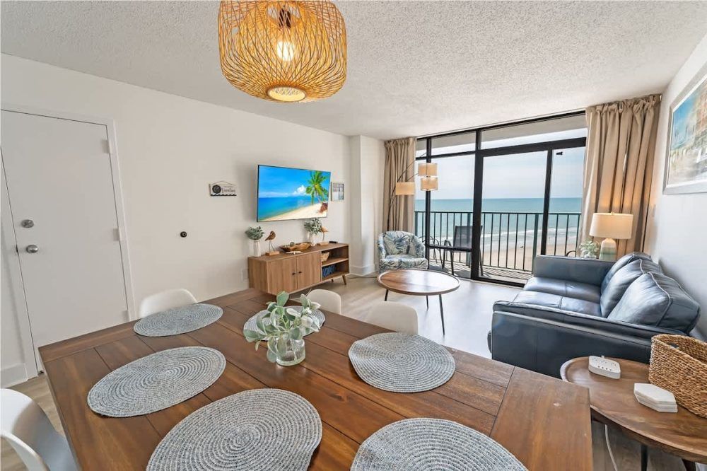 Our beachfront condominium offers 2 Queen Beds, a private bathroom, full-sized appliances, and a kitchen table. This oceanview residence comfortably accommodates 4 guests. Take in the morning sunrise from your private oceanfront balcony with breathtaking views of the ocean. Abundant amenities are at your disposal in this beachfront resort, including indoor and outdoor whirlpools, a lazy river ride, a spacious pool deck, and inviting social areas. Enjoy the Oceanfront pools, an indoor pool, and a Children’s Interactive splash and play area. And the best part? Free WIFI for your convenience!