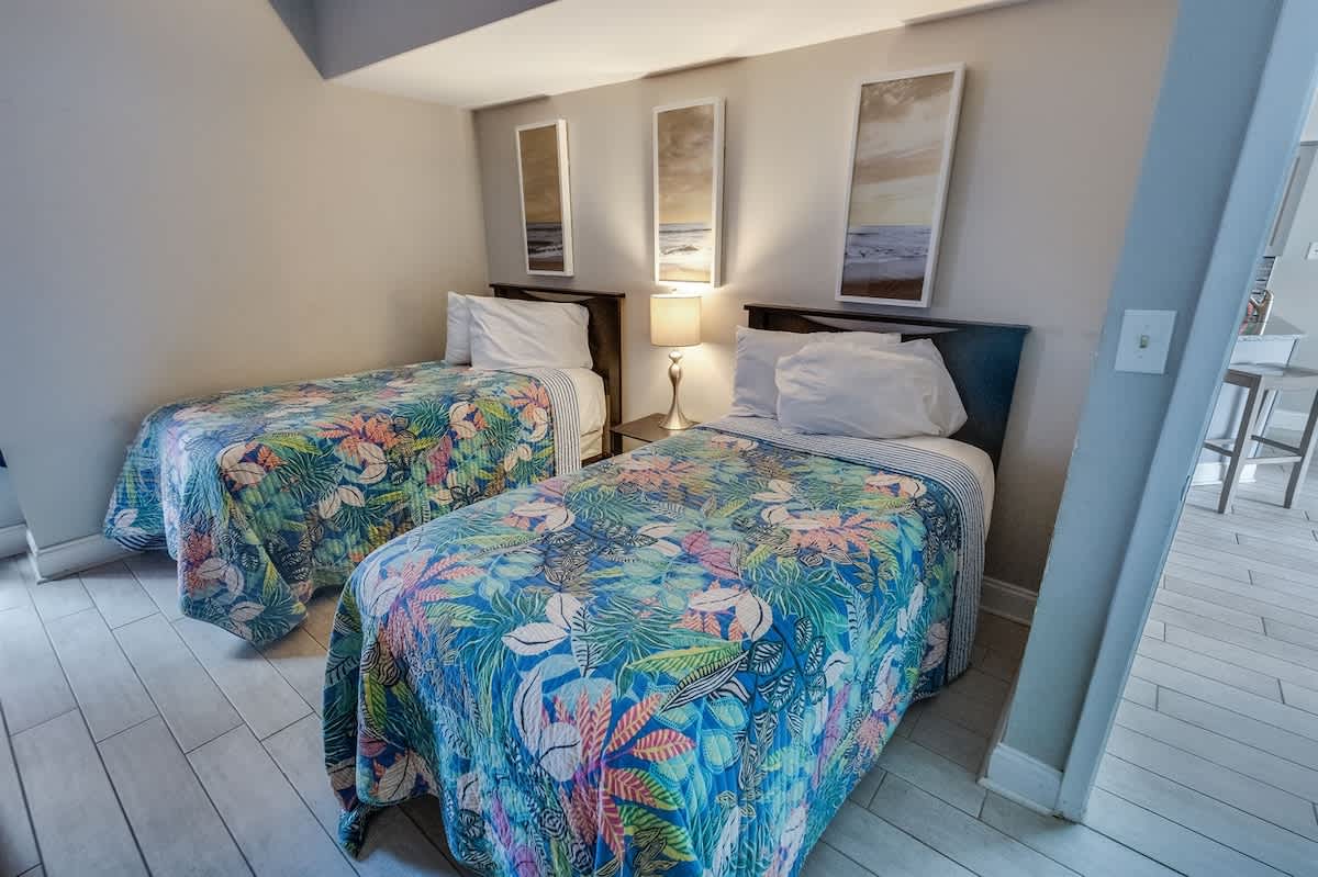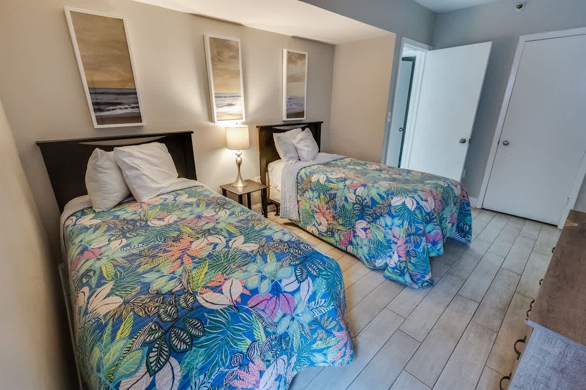 Recently added to Big Fish Rentals! This 2-bedroom condo on the 2nd floor of the Palace Resort features a private balcony, spacious living area, 2 bathrooms, and sleeps 4 with 1 queen and 2 twin beds. Enjoy granite countertops, a full kitchen with dining table, free WiFi, and free parking.
