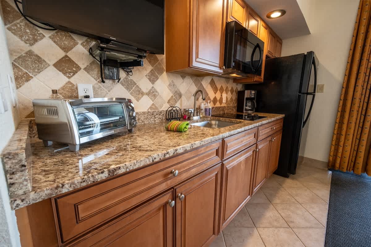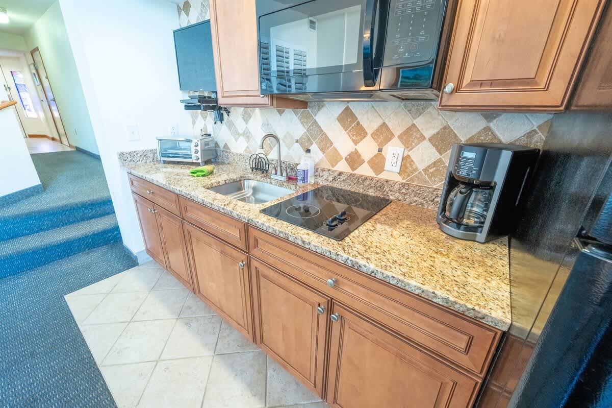 * Full-size fridge, microwave, and 2 burner cooktop; Kitchen Table