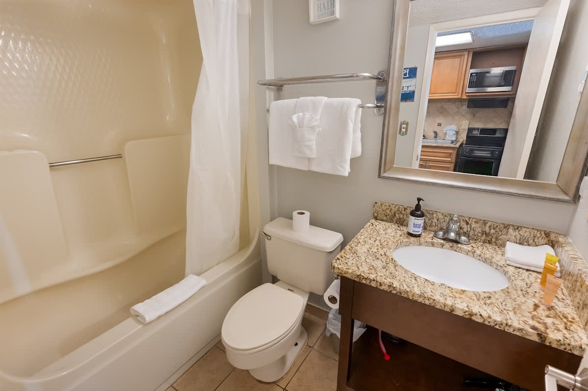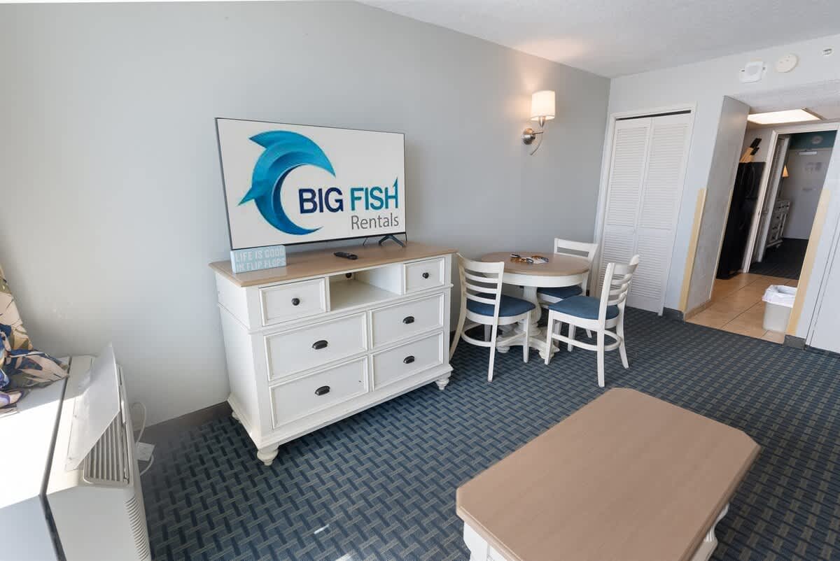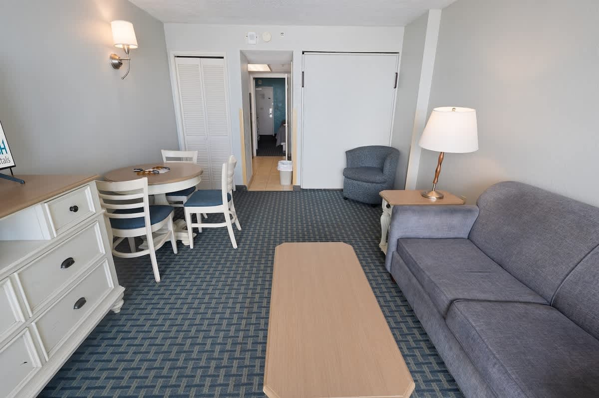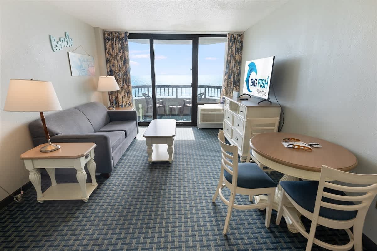 Our resort enjoys a prime location just steps away from the beach and is conveniently close to Family Kingdom Amusement Park. A short drive will take you to popular destinations such as Broadway at the Beach, Market Common, and Ripley’s Aquarium. Moreover, you’ll have easy access to an array of dining options, golf courses, and shopping venues—all just a short drive away. AND BEST OF ALL, you’ll enjoy FREE WIFI!