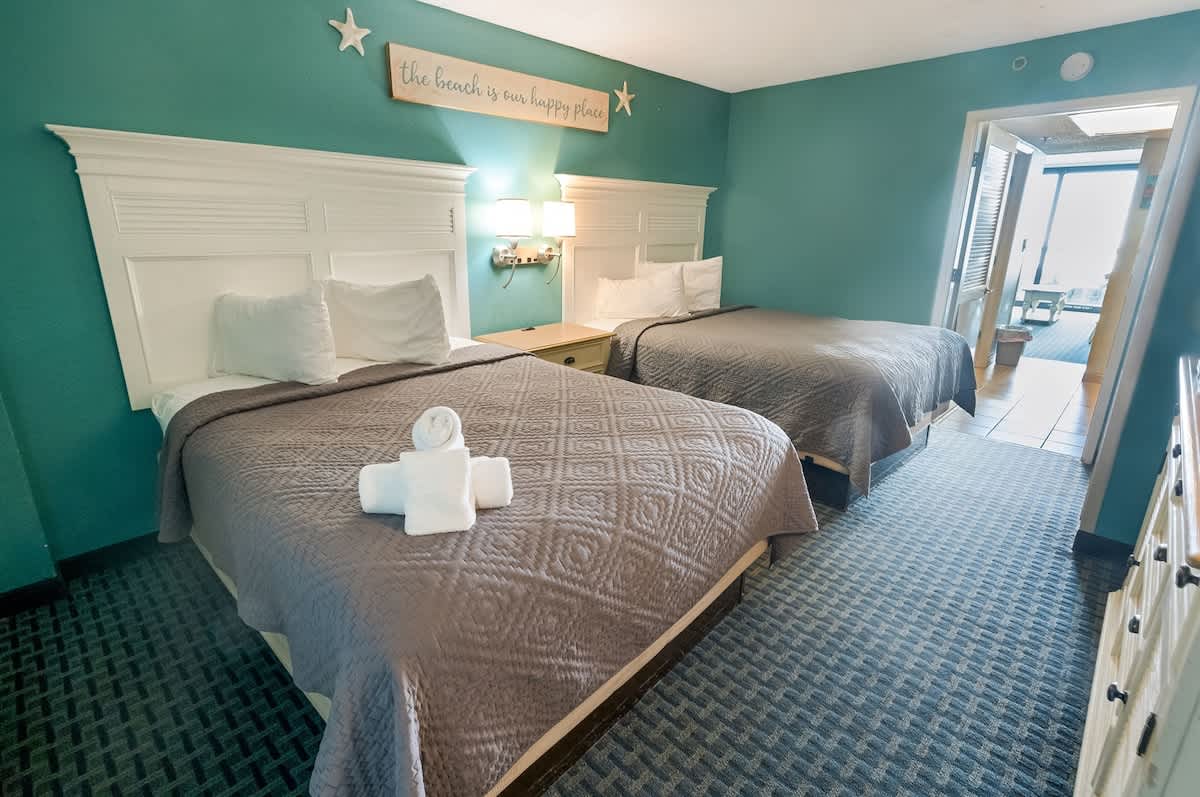 Our beachfront condominium offers two comfortable Queen beds, a private bathroom, and full-sized appliances, providing comfortable accommodations for up to four guests. Start your day with a breathtaking sunrise view from your private oceanfront balcony. You’ll also have access to a wide array of amenities, including a spacious kiddie fun activity pool area, three lazy rivers, seven hot tubs, two outdoor pools, two indoor pools, and more. This unit in our wonderful resort is a fantastic choice!