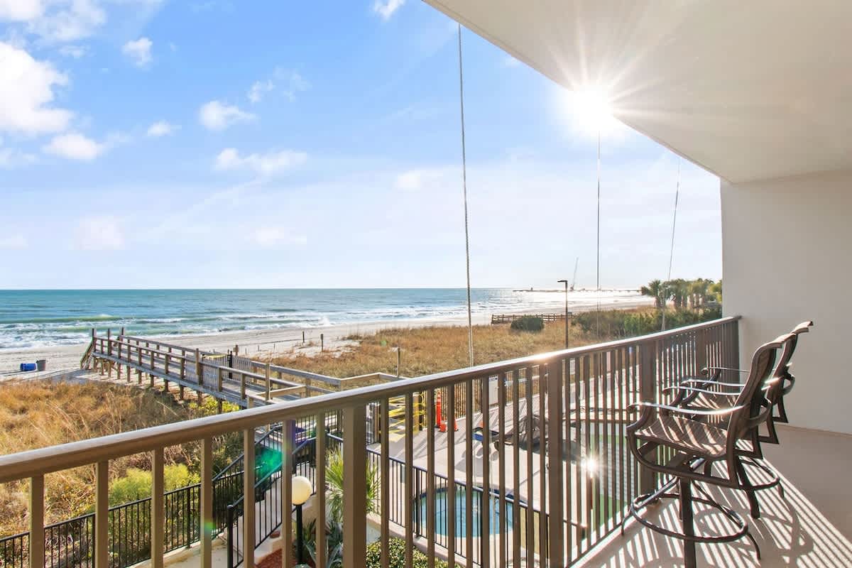 ⭐ “Ideal location! The quieter side of North Myrtle Beach! The condo was pristine and offered plenty of space. We adored the balcony view! Booking again would be a no-brainer.” – Linda
