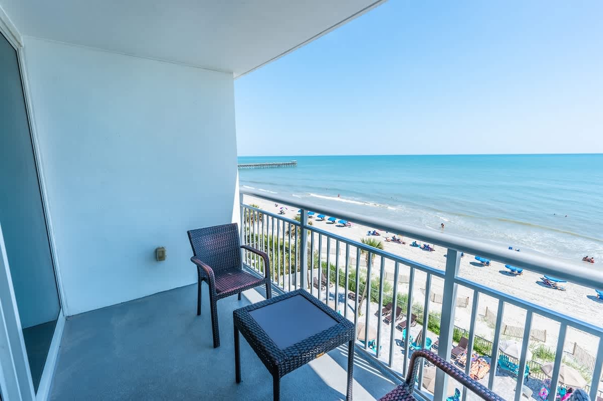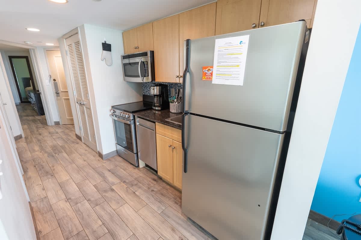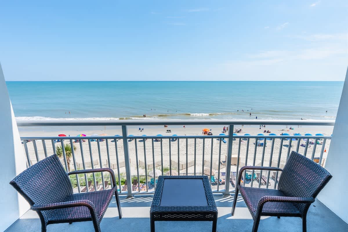 Equipped with a full kitchen, 2 queen beds, an oversized jet tub, this space has it all. Full view of the ocean and pool areas!
