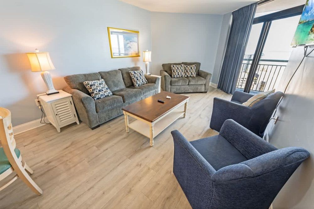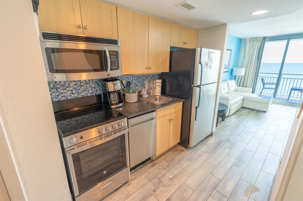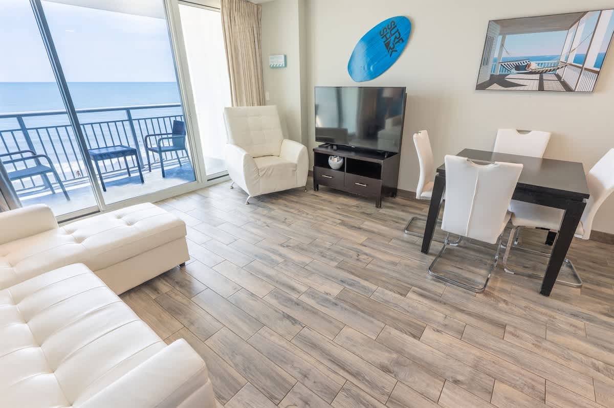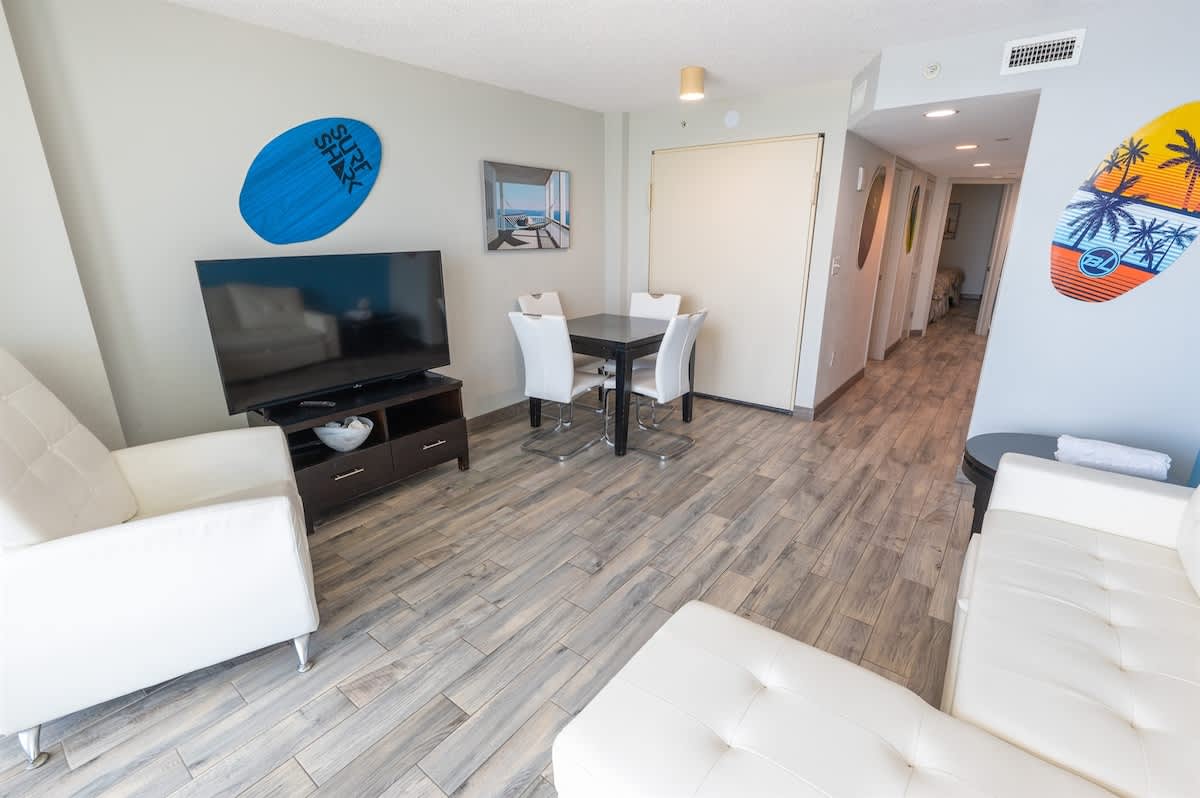 Equipped with a full kitchen, 2 queen beds, an oversized jet tub, this space has it all. Full view of the ocean and pool areas!