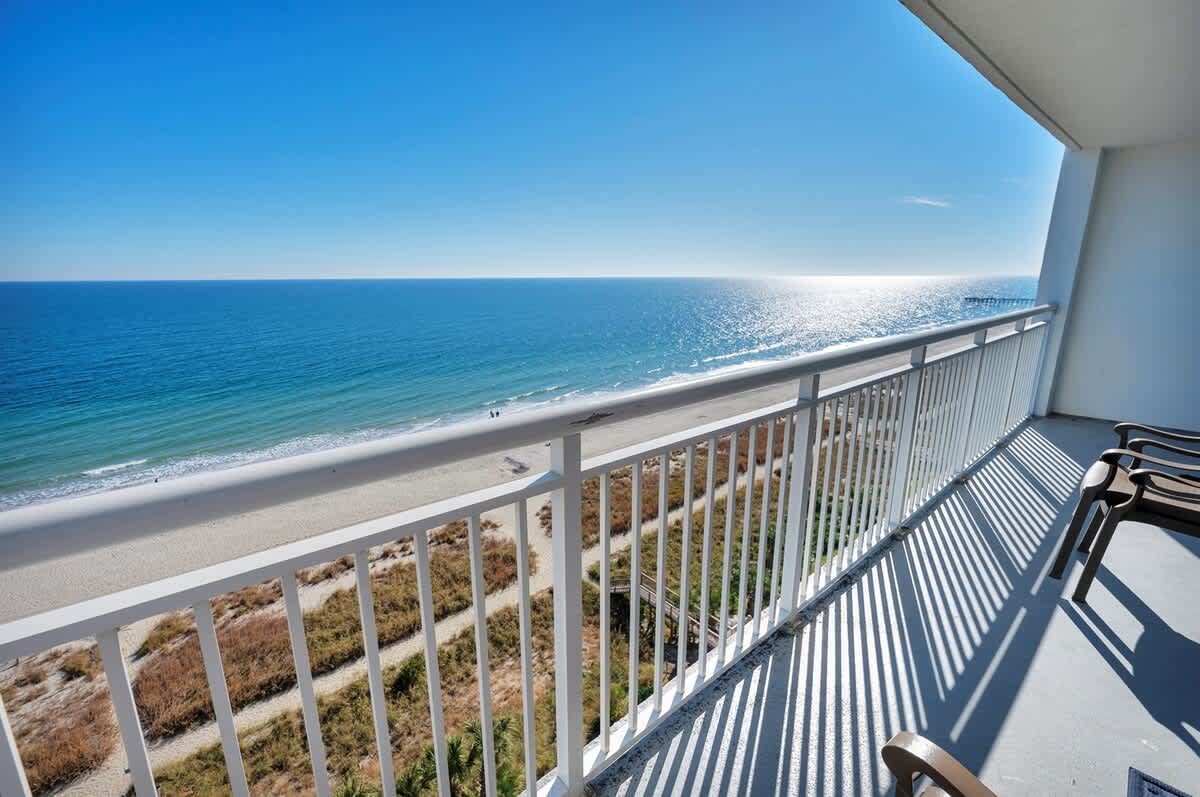 Step onto the balcony for uninterrupted ocean views and a steady coastal breeze. Beyond the condo, guests have resort access that includes pools, a hot tub, and a lazy river, along with shared beachfront access just steps away. An outdoor playground and open grassy areas add space for families to spread out, and an outdoor shower is available after time on the beach.
