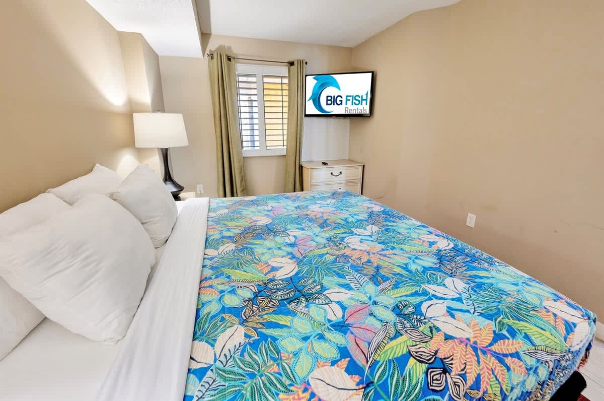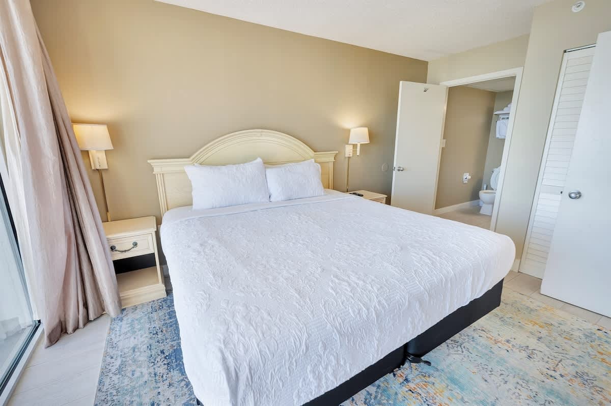 This entire condo sits on the 11th floor of Camelot Resort and offers ocean, beach, resort, and city skyline views. The layout is designed for easy group stays, blending shared living space with room to retreat after full days by the water or exploring nearby attractions. Air conditioning and heating keep the condo comfortable year-round, and an elevator provides convenient access.