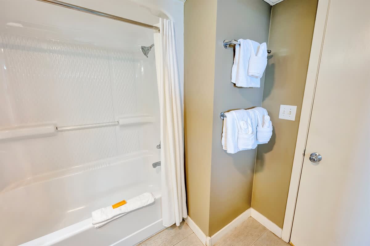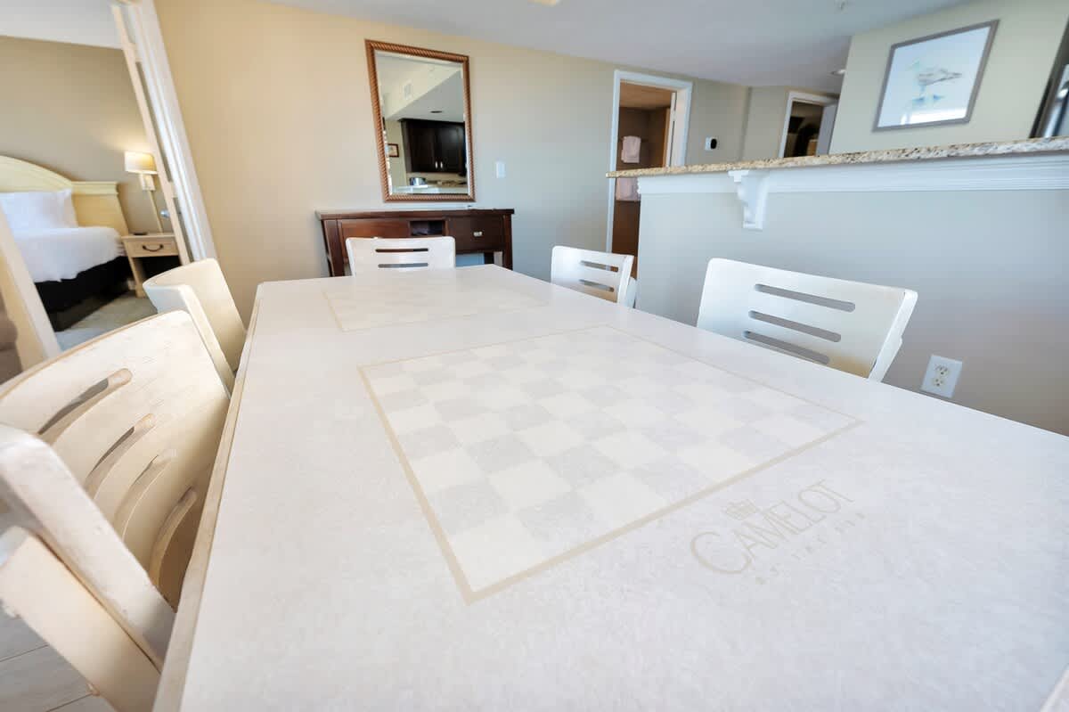 Camelot’s indoor pavilion with a glass front and potted plants contain a lazy river, a free-form pool, a small toddler pool, and a spa tub. Stroll down the ocean boulevard to enjoy the many restaurants and shops in the area! AND BEST OF ALL FREE WIFI!