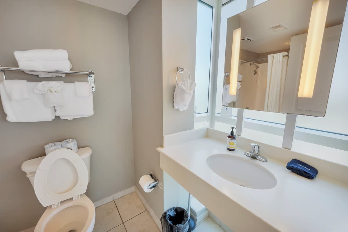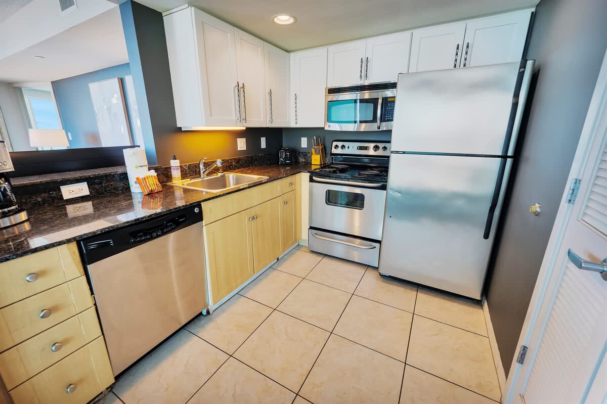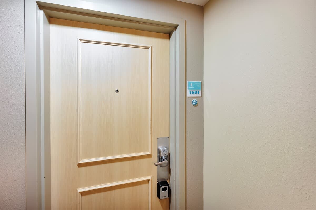 Inside, you will find air conditioning, heating, WiFi, and a TV for downtime. An in-unit washer and dryer, bedroom and bathroom essentials, and thoughtful home safety features add convenience throughout your stay. An elevator provides easy access to the unit.