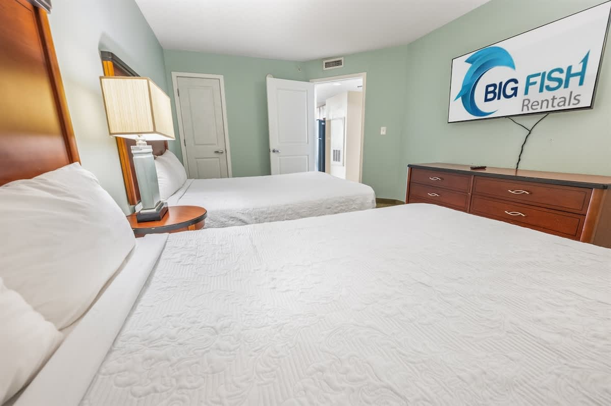 This condo offers 1 bedroom with 2 queen beds, 1 full bathroom with garden jet tub, incredible views from the balcony, and access to resort-style amenities.