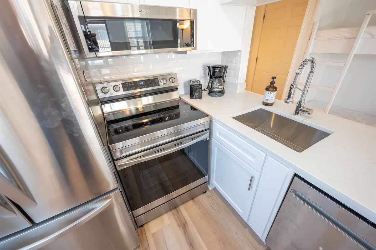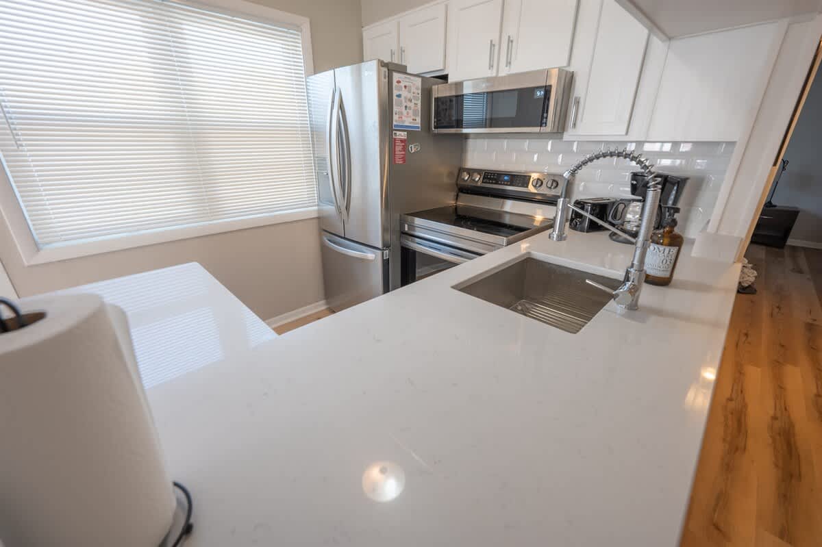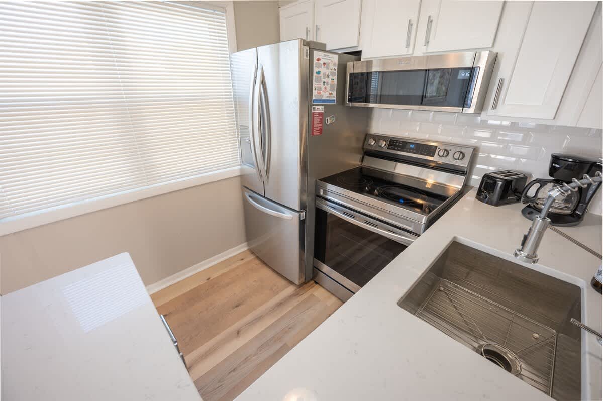 * FULLY REMODELED KITCHEN with Full-size fridge, microwave, and 4 burner cooktop;