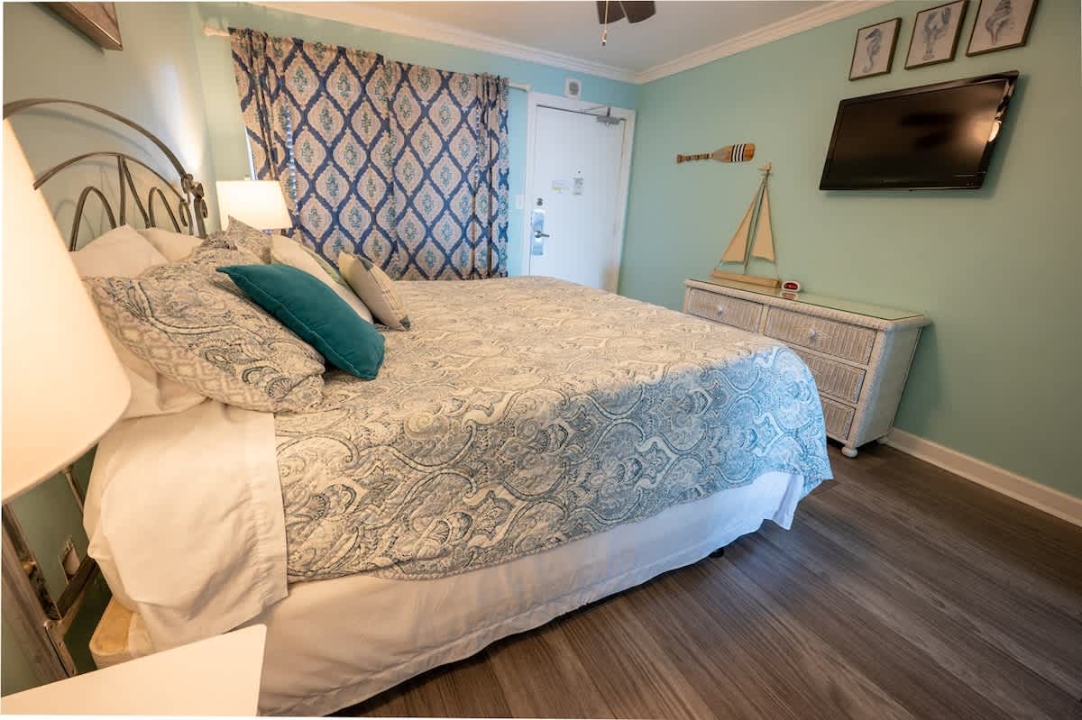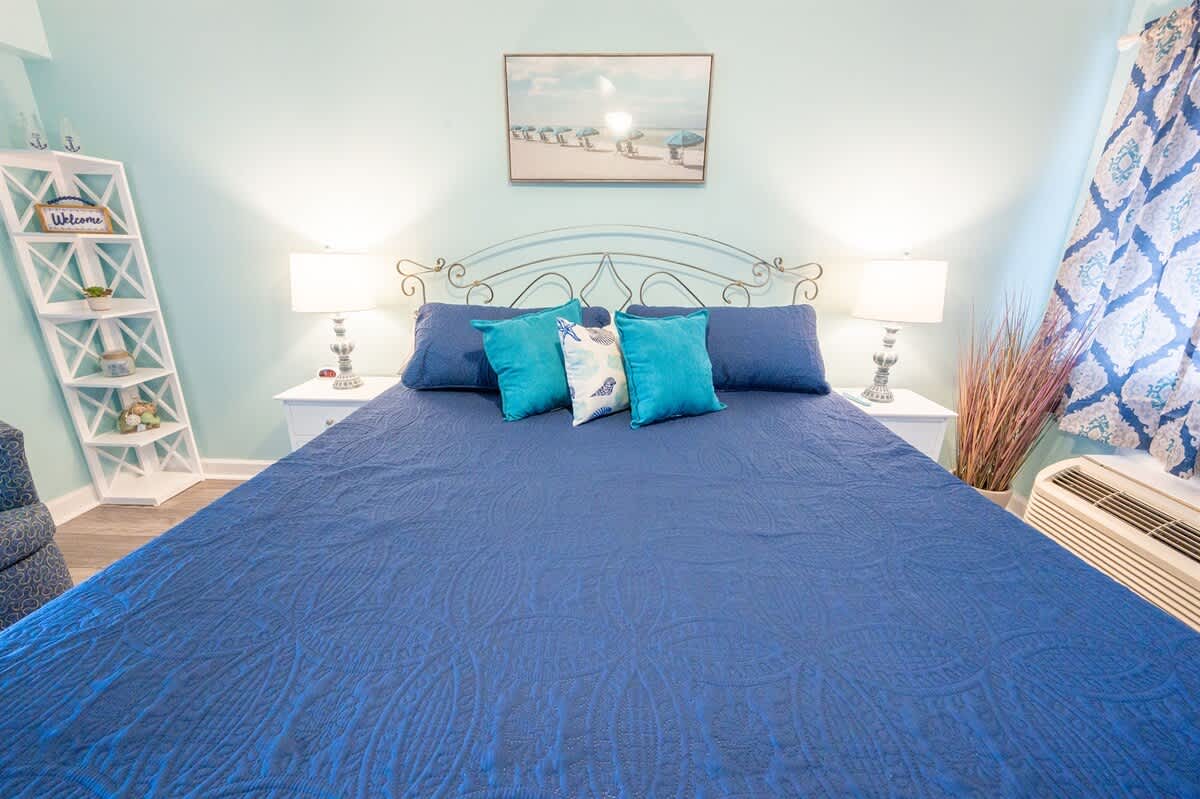 * 1 King, 1 Sleeper Sofa, Sleeps up to 4, sheets provided